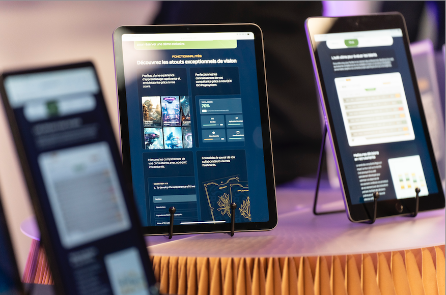 Dans ce cadre, nous avons créé l'identité visuelle, aménagé les espaces avec du mobilier, créé un éclairage d'ambiance personnalisé, instauré des stèles aux couleurs de l'événement et géré l'accueil en créant et en distribuant des badges.