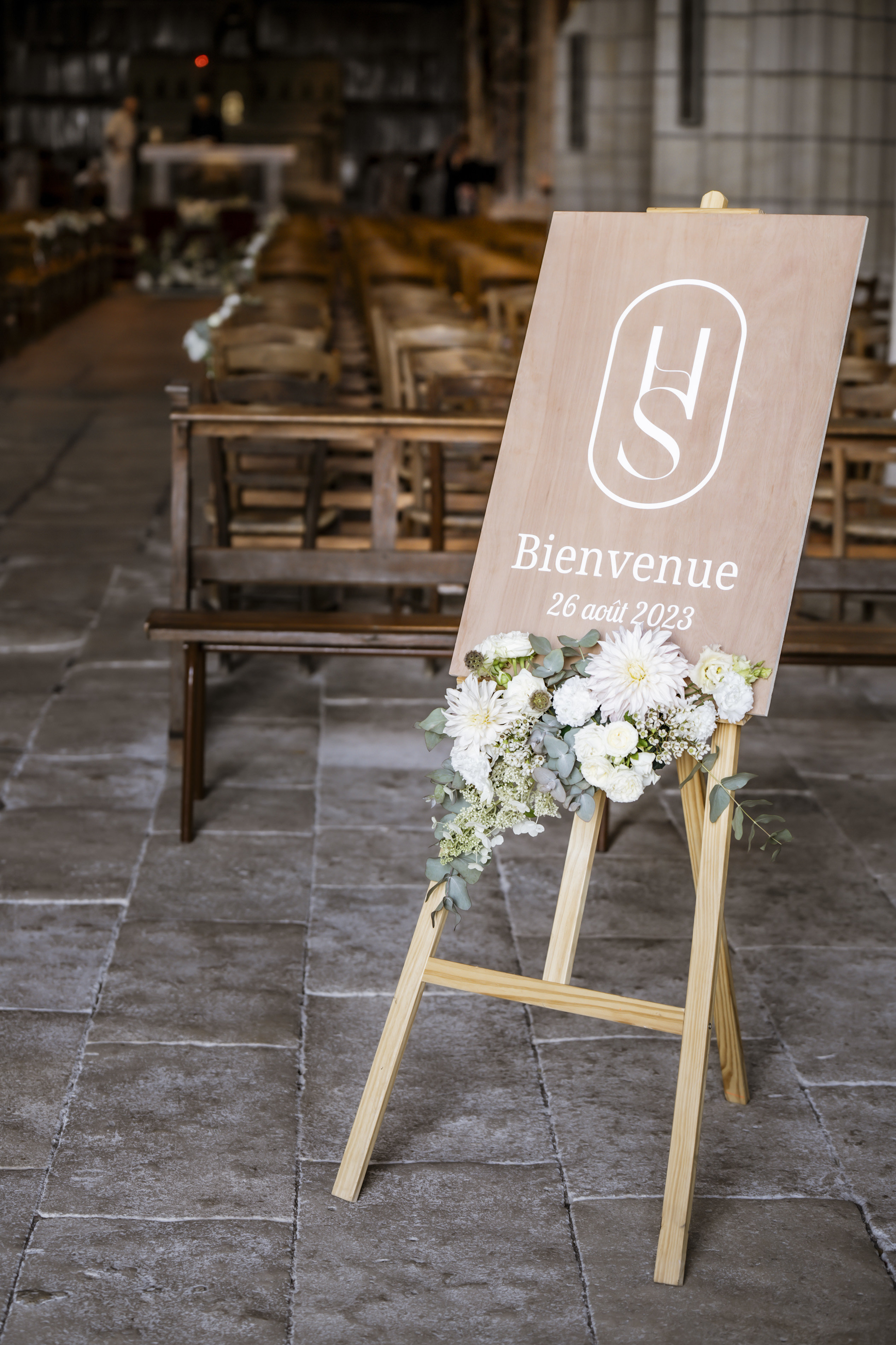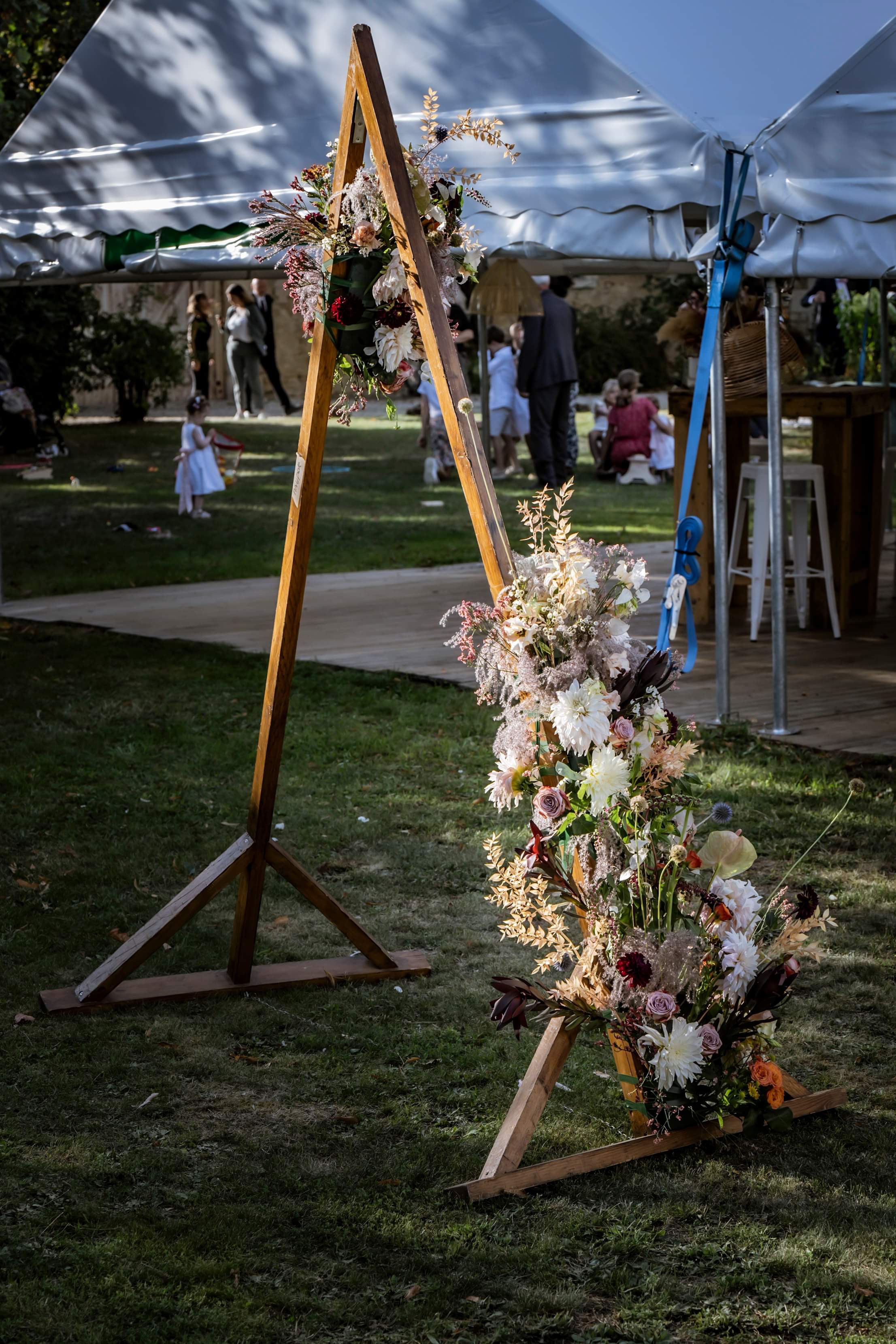 Hortense et Simon souhaitaient accueillir les invités de leur mariage dans une ambiance simple et champêtre ponctuée d’éléments végétaux.