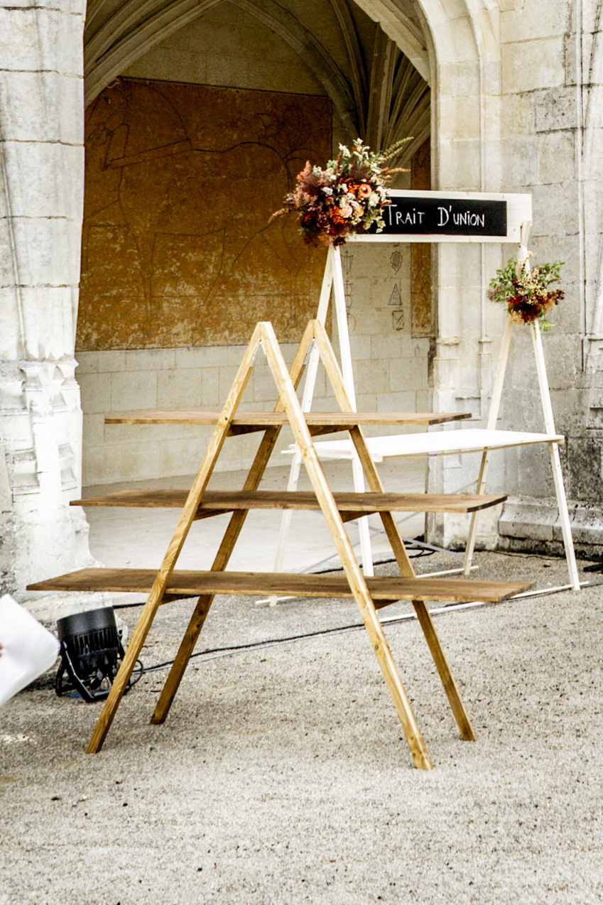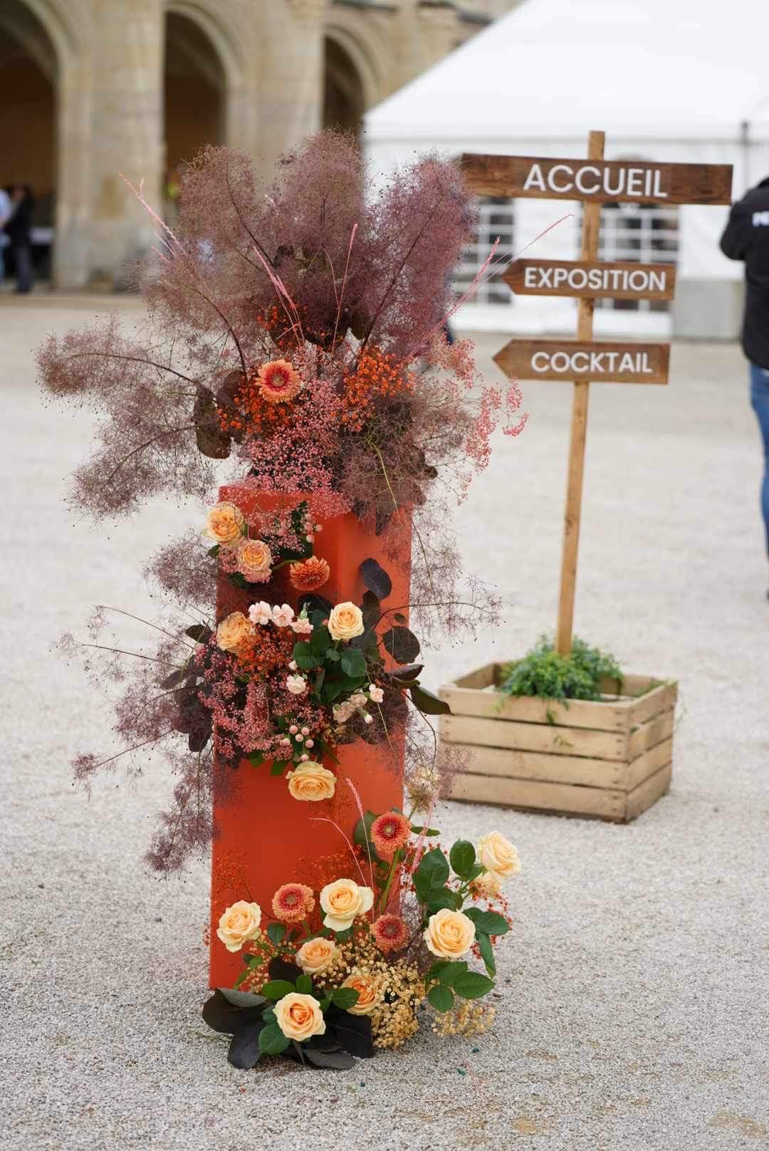 Pour cet événement, nous avons organisé une scénographie complète et élégante, avec une décoration boisée relevée par des notes florales colorées.